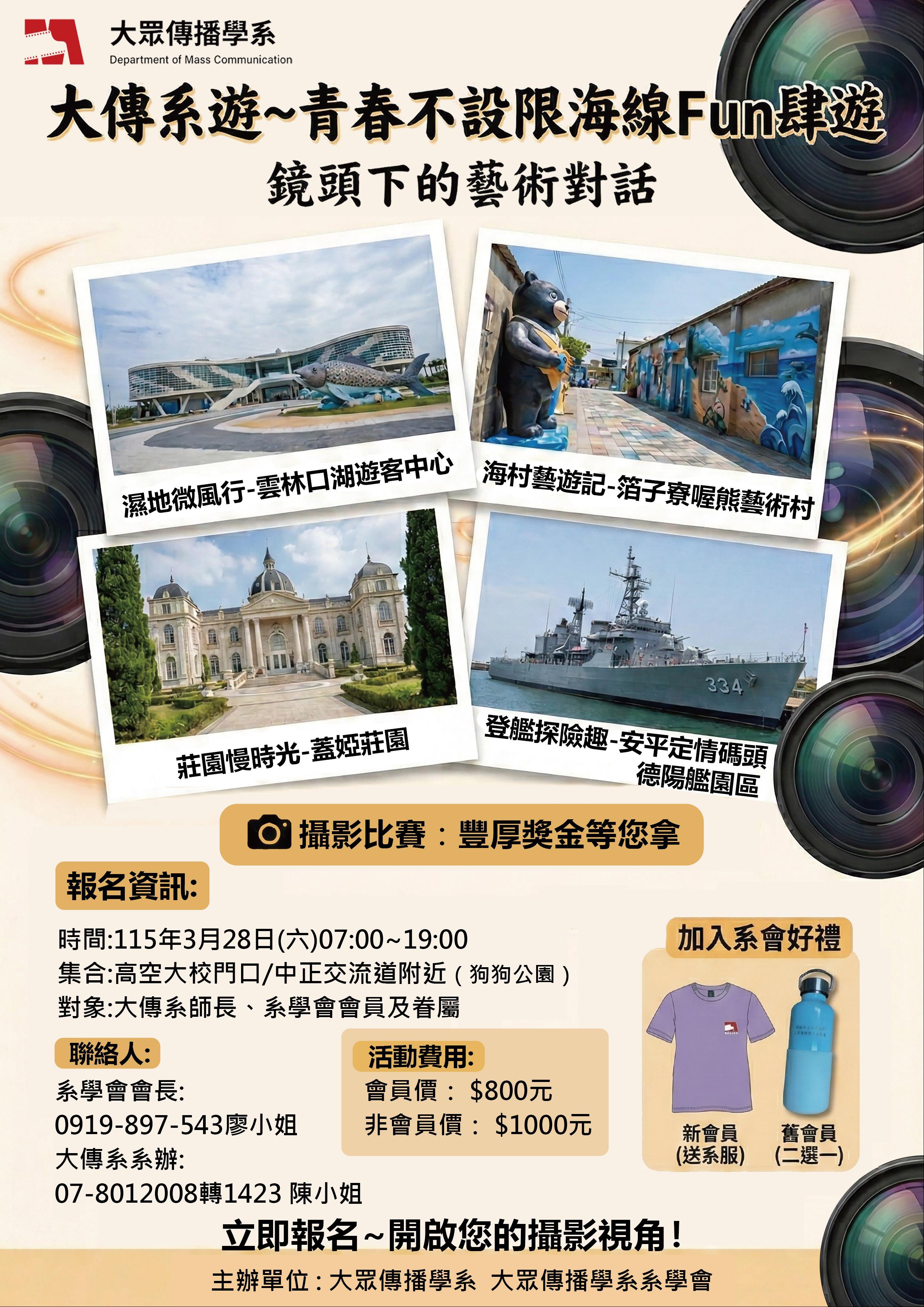【大眾傳播學系】3/28(六)系遊活動《青春不設限・海線Fun肆玩》名額有限~~快速手刀報名!!
