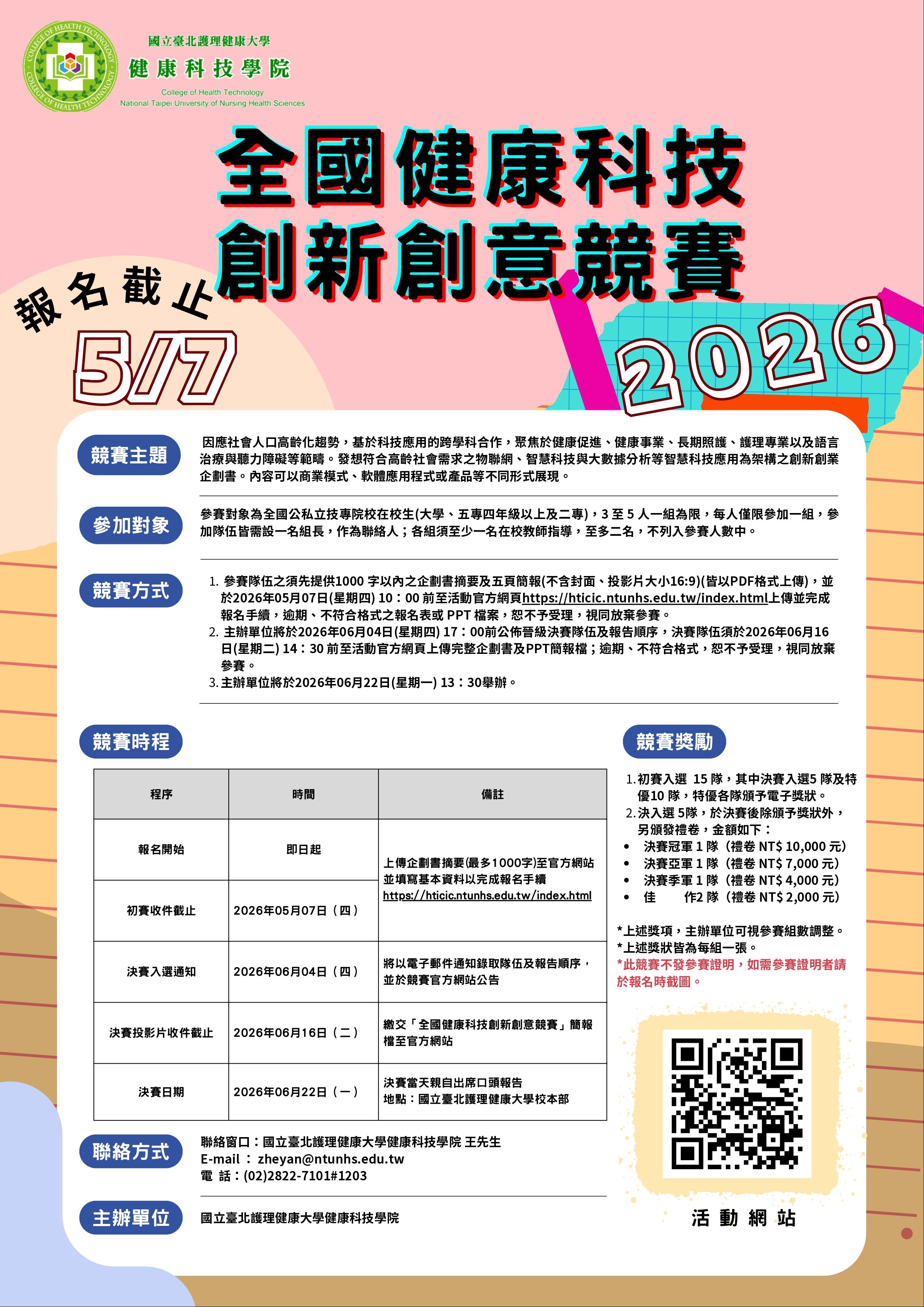 【轉知】2026全國健康科技創新創意競賽