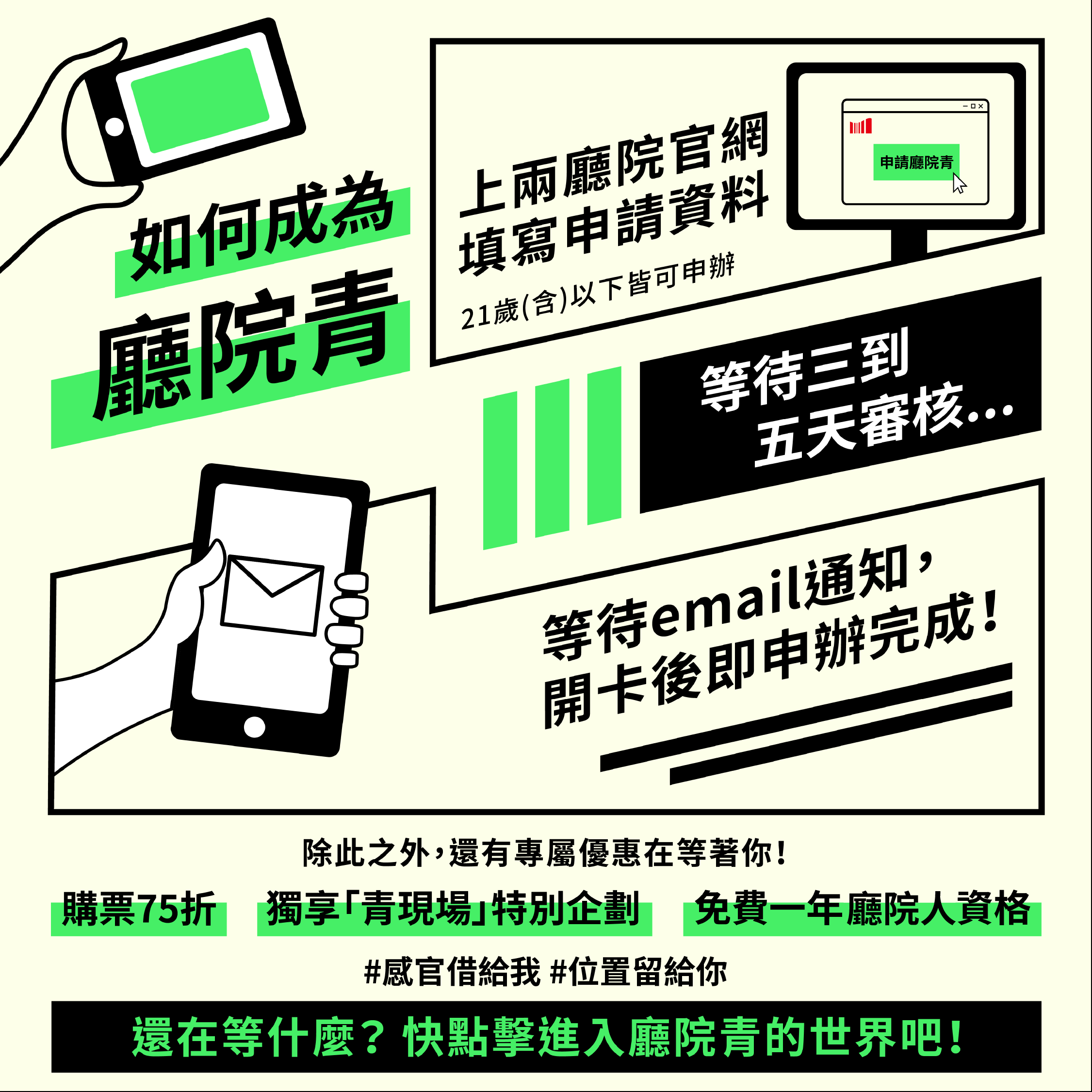 【轉知】「國家兩廳院青年會員—廳院青」免費申辦資訊