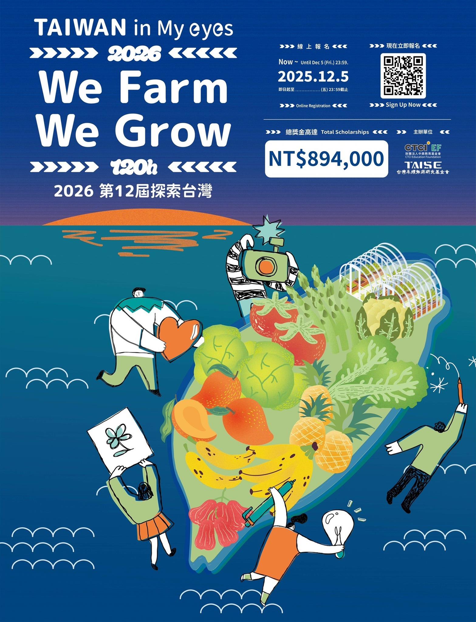 二、活動目的:中鼎教育基金會及台灣永續能源研究基金會(簡稱主辦單位)為鼓勵大學院校本國籍及外國籍同學交流互動,以及了解臺灣推展「聯合國永續發展目標(SDGs)」現況並增進學研生對國內標竿企業永續行動之瞭解,自2017年暑假起即共同辦理首屆「探索台灣120h」活動,獲得社會、媒體廣大迴響及豐碩成果。為達本活動目的及持續各校同學參與動能,主辦單位將於2026年1月26日至30日賡續辦理第十二屆「2026探索台灣120h-你農我農」活動。