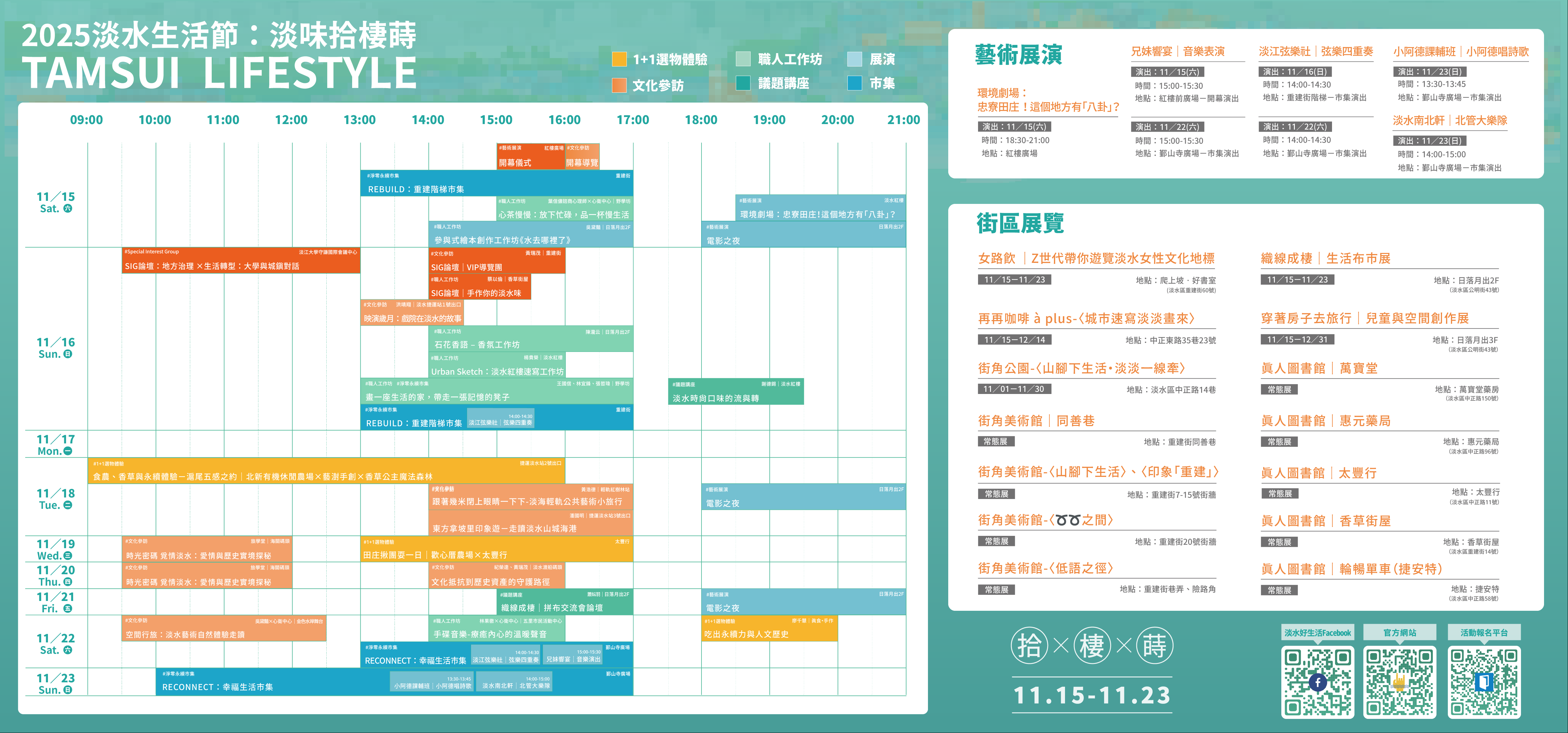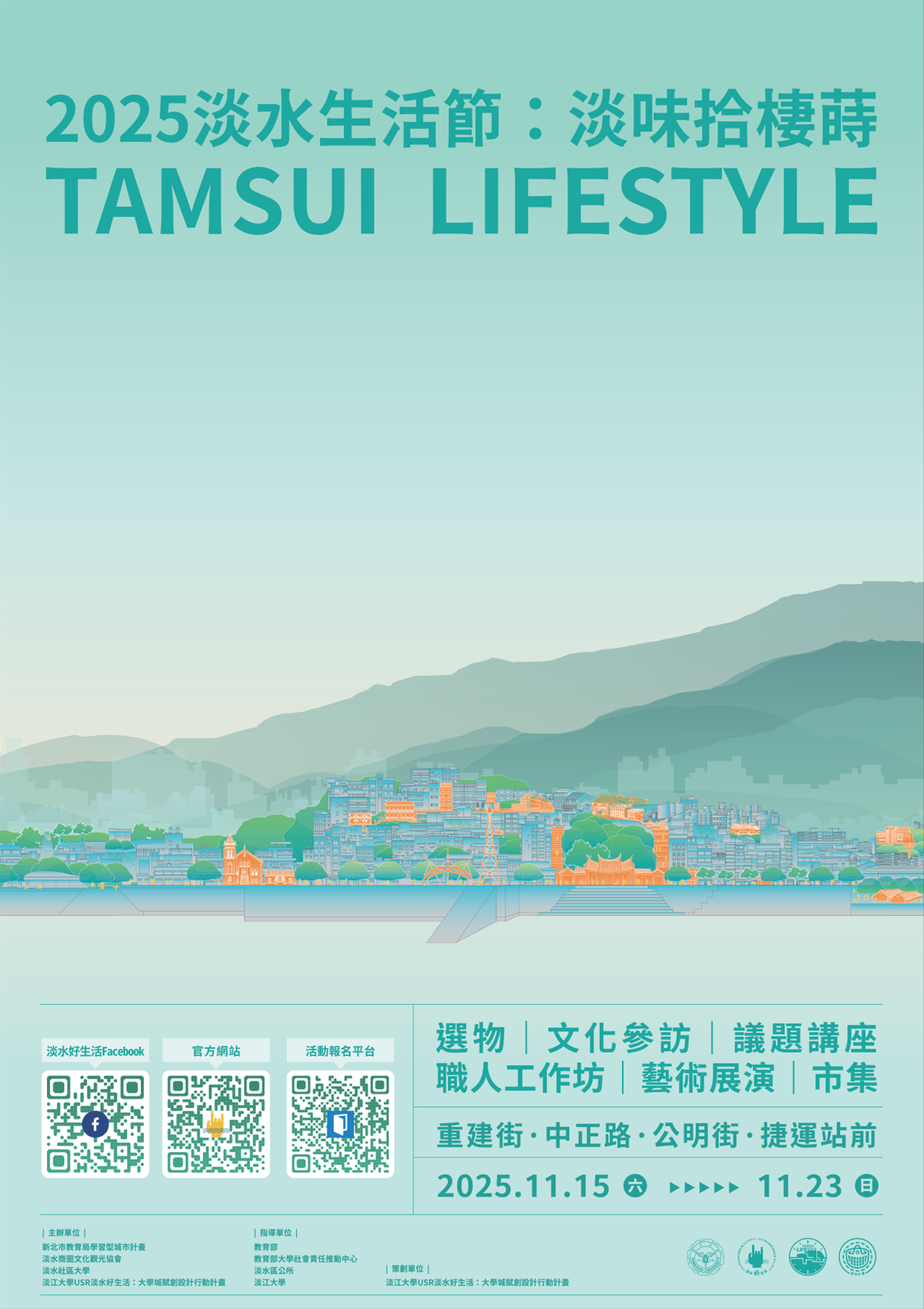 一、主辦單位:淡江大學 二、活動資訊: (一)日期:114年11月15日(星期六)至23日(星期日)。 (二)地點:淡水區重建街、中正路、公明街、捷運站前。 (三)活動報名網址:請點選下方─相關連結。 (四)活動節目表:請點選下方─相關檔案。 ;