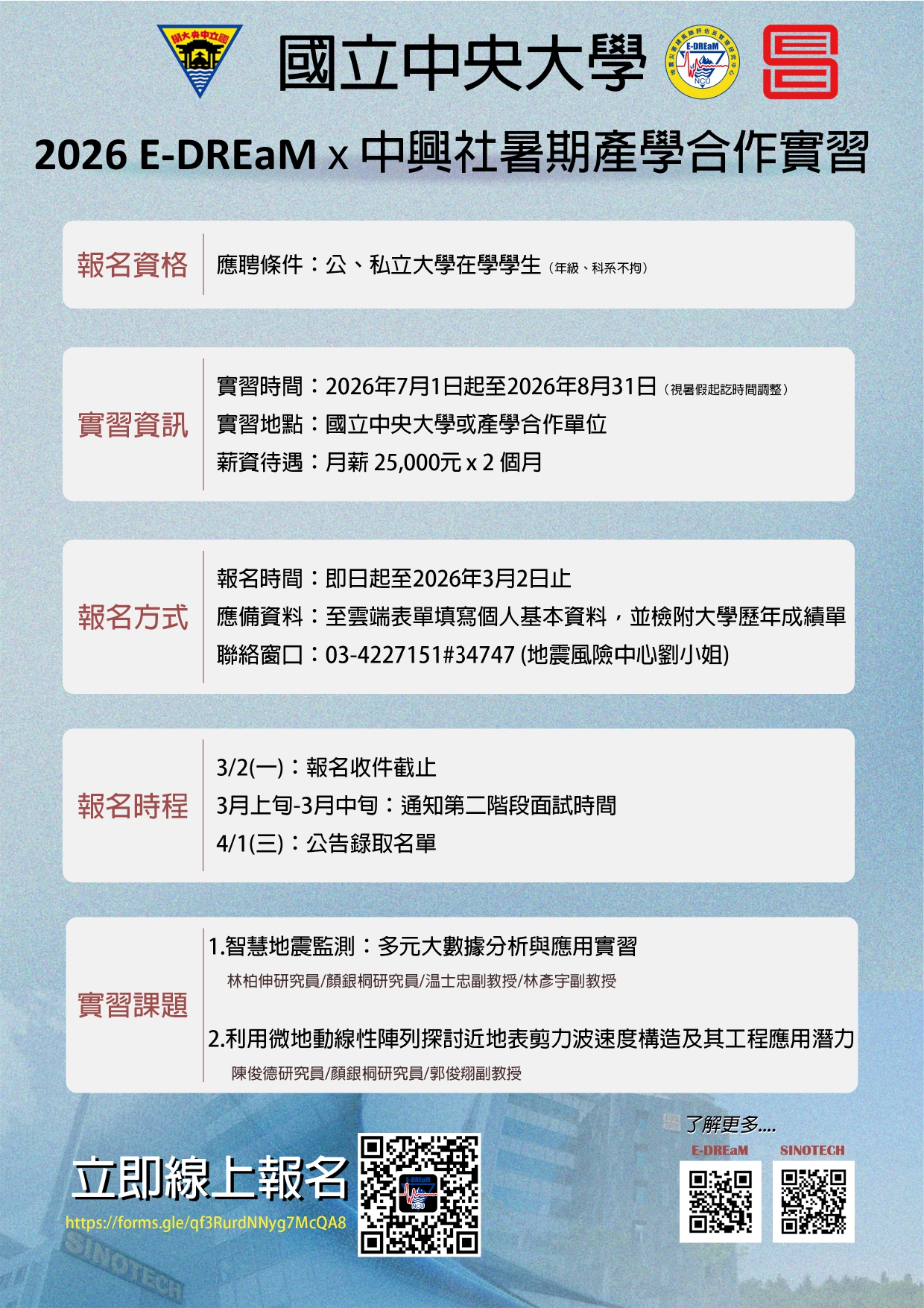 【轉知】2026 E-DREaM大學生暑期產學合作實習計畫