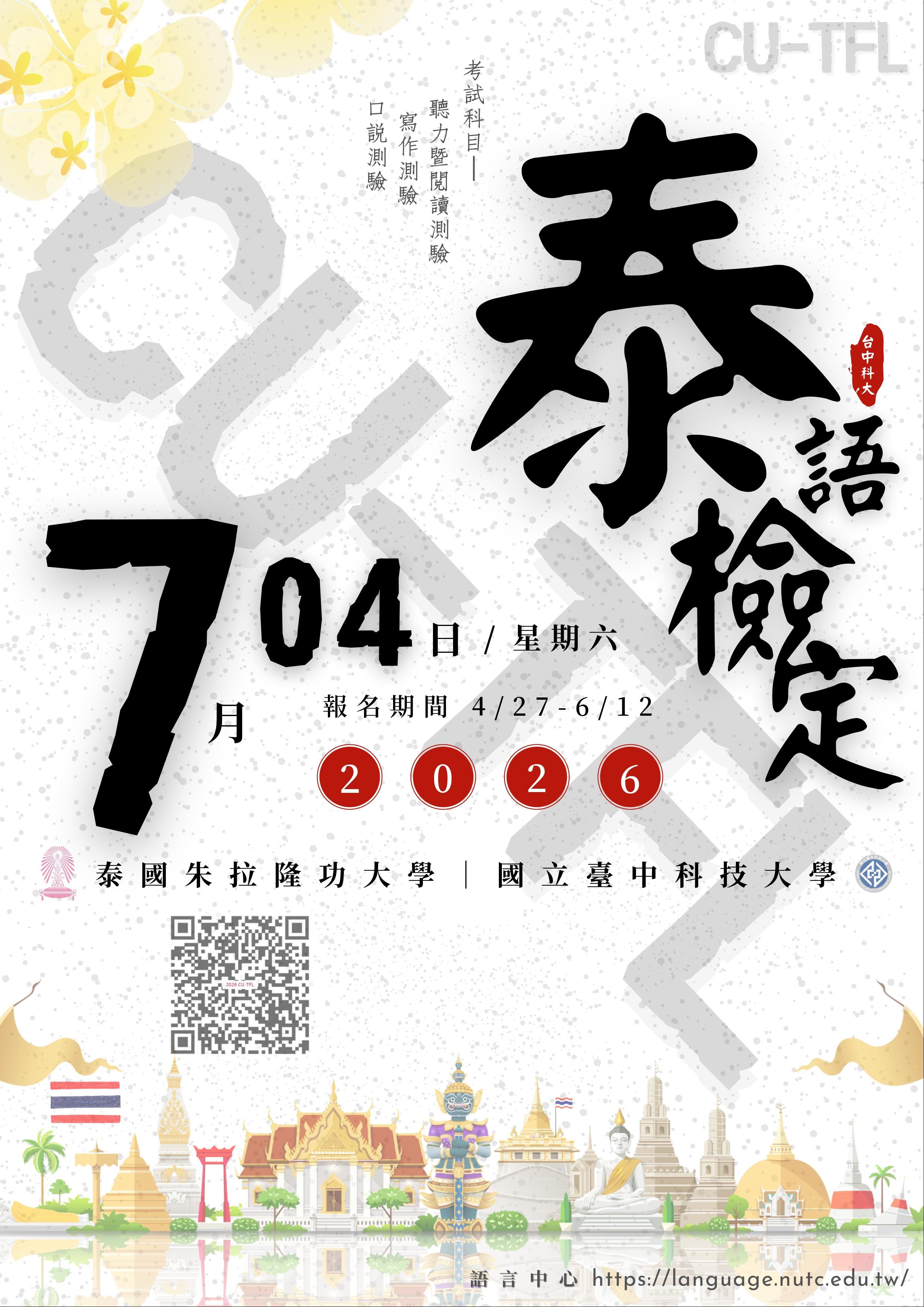 【轉知】CU-TFL泰語能力檢定測驗