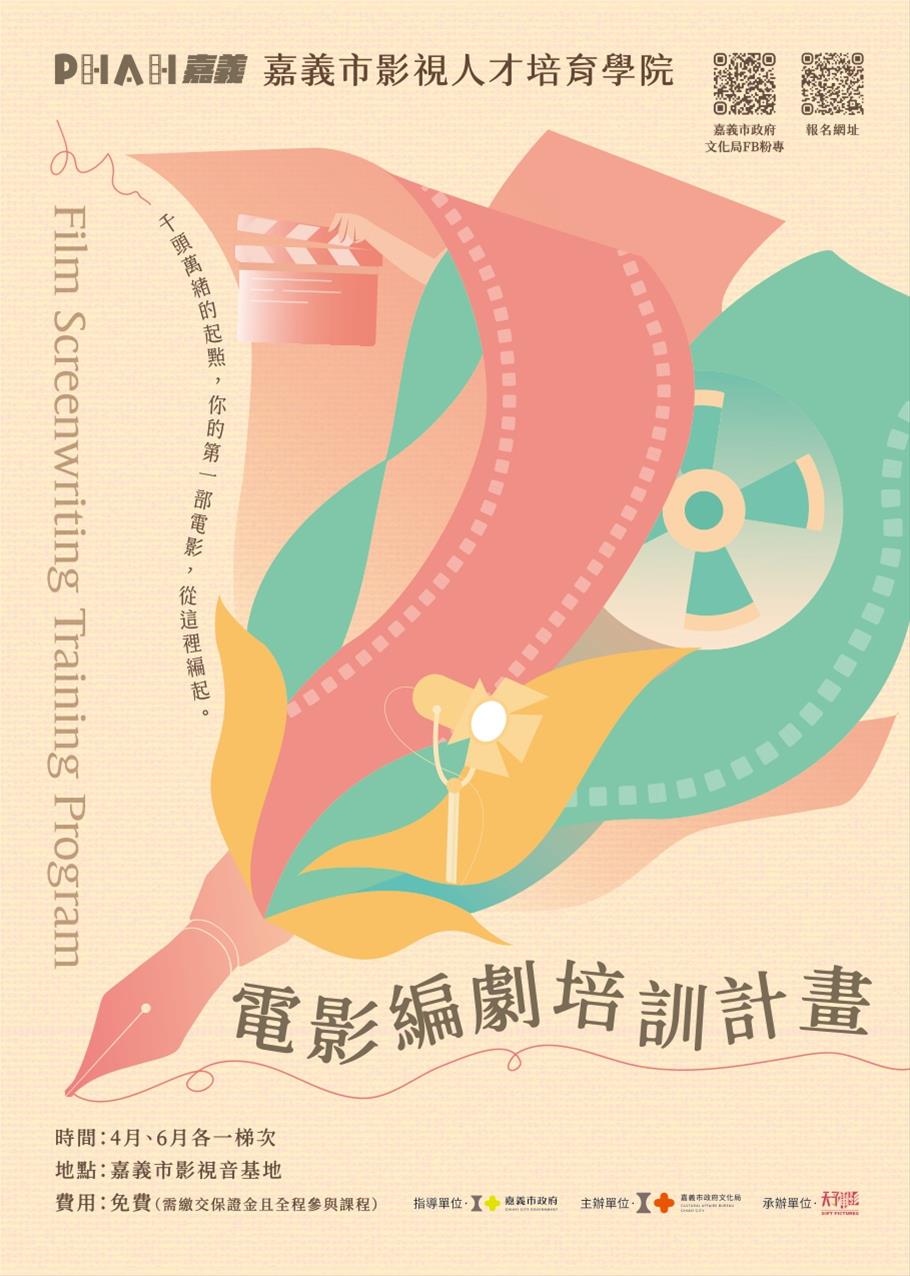 二、活動目的:嘉義市影視人才培育學院第三屆全新推出「電影編劇培訓工作坊」,首次聚焦劇本創作培訓,協助創作者將故事構想轉化為具產業潛力之影視作品。課程特邀活躍於影視產業第一線之專業講師群授課,透過系統化課程設計與實務指導,協助學員完成劇本創作,並培養影視提案能力,強化劇本開發與產業接軌之實務知能。