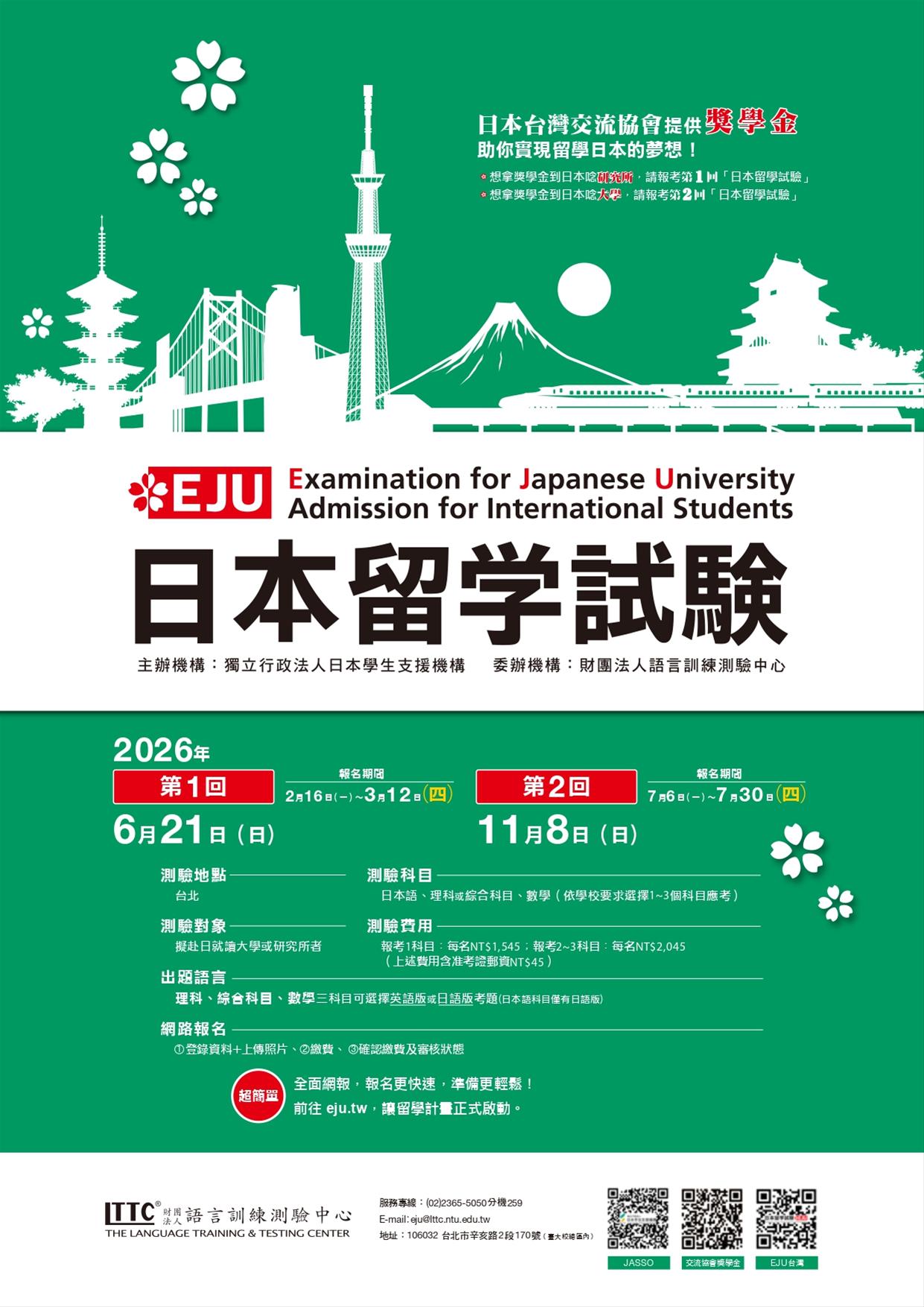 【轉知】115年第1回「日本留學試驗(EJU)」