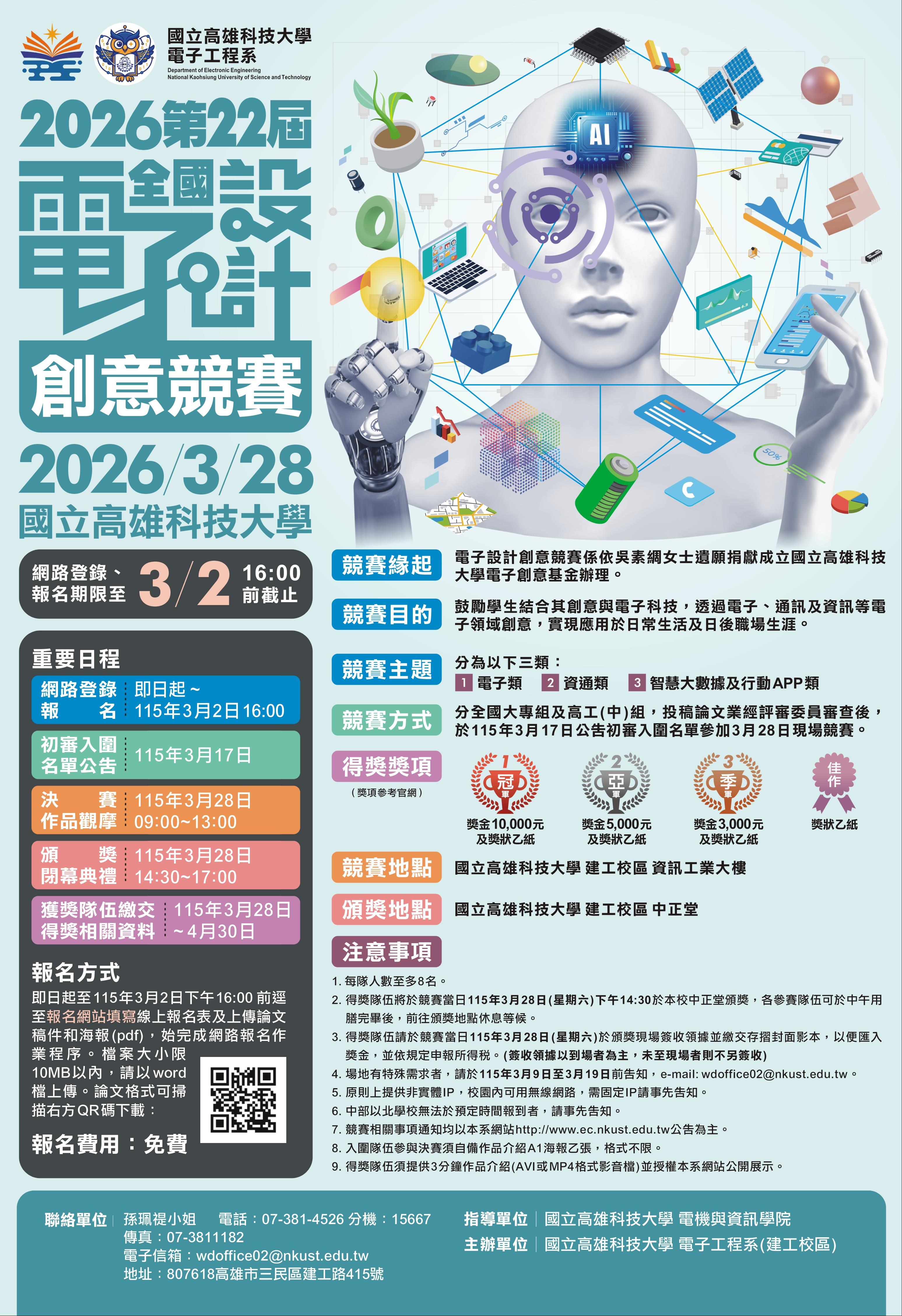 一、主辦單位:國立高雄科技大學 電子工程系(建工校區)