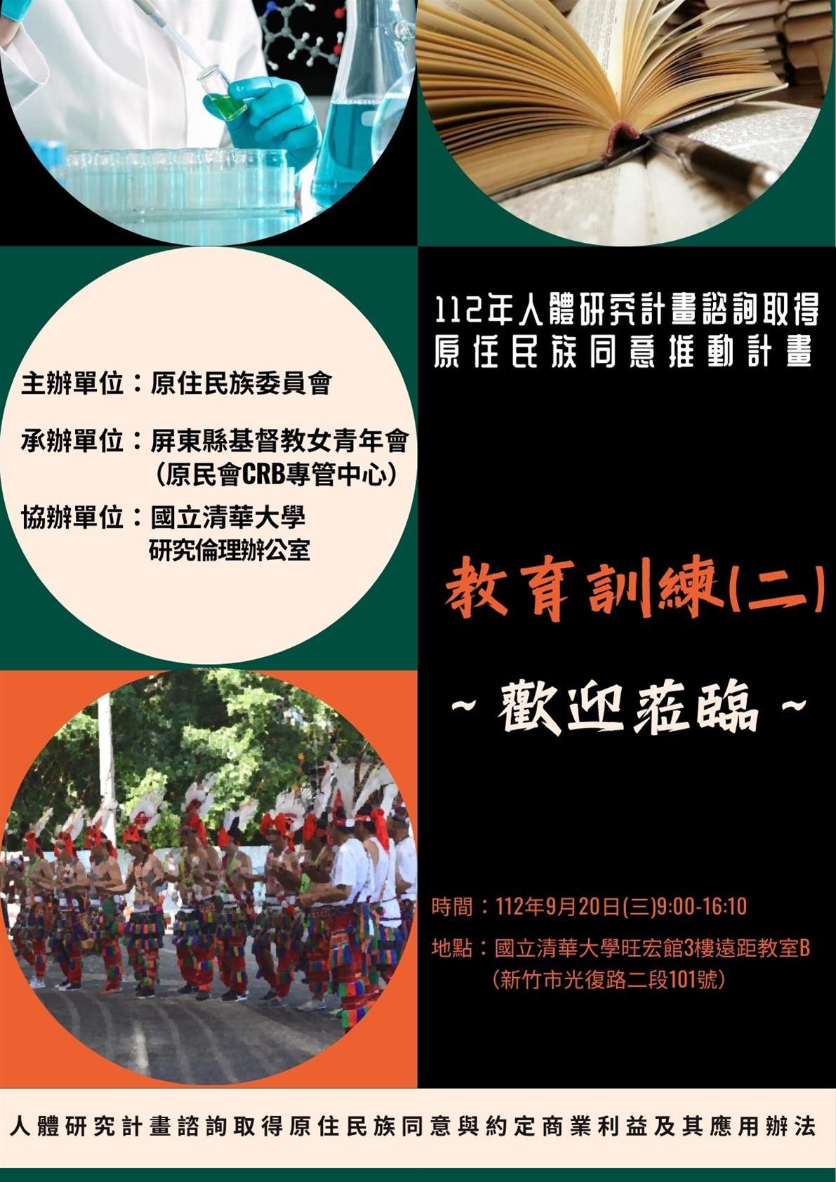 (一)課程主題:112年度人體研究計畫諮詢取得原住民族推動計畫第二場教育訓練課程(6小時)。