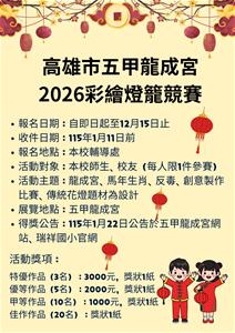 八、頒獎:115年2月3日下午7點,在五甲龍成宮舉行