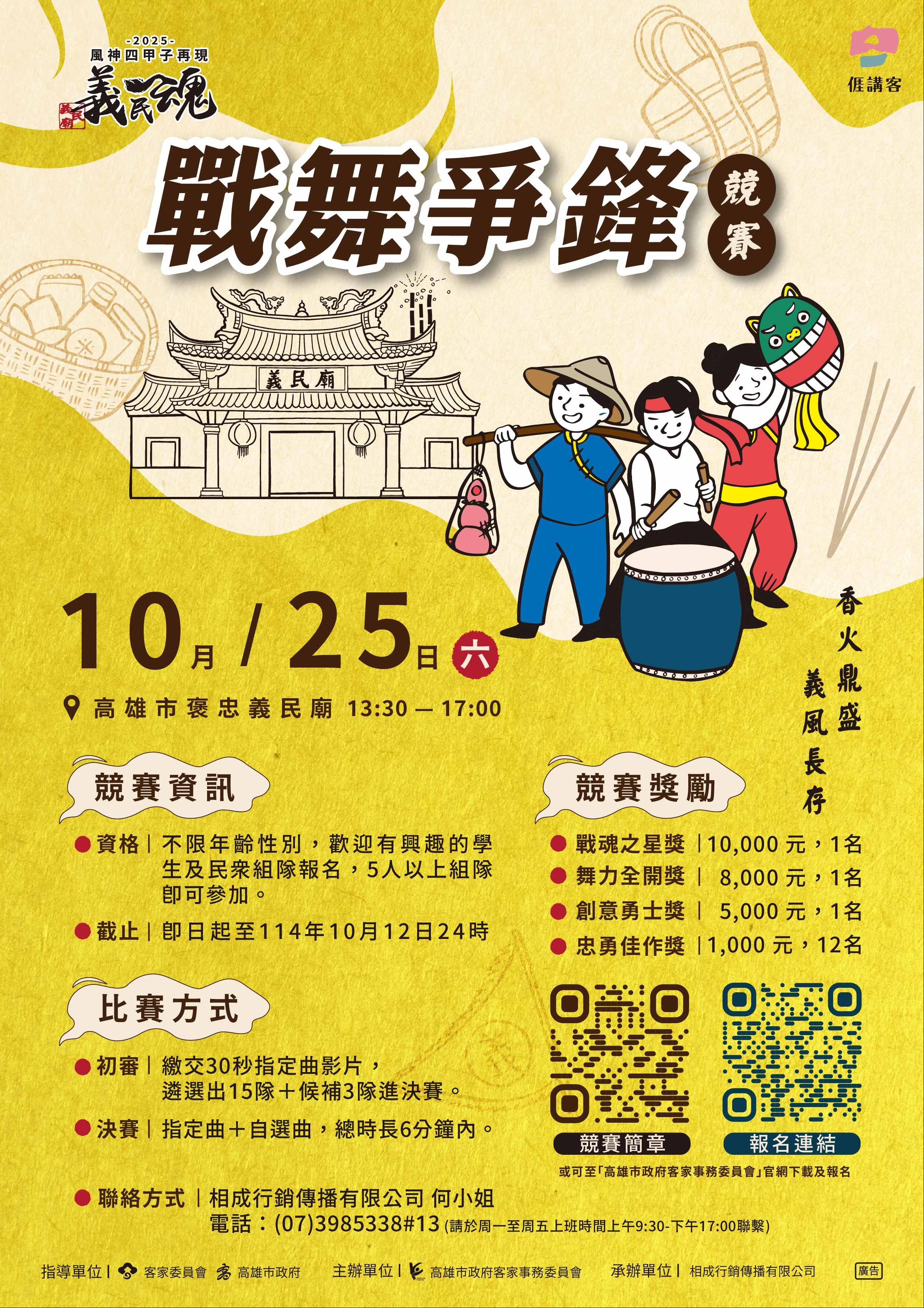 (2)比賽地點:高雄市褒忠義民廟廣場(三民區褒忠街114號)。