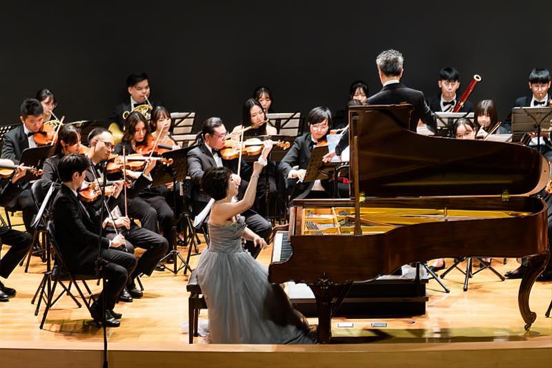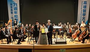 (中央社訊息服務20251024 10:28:08)高雄醫學大學歡慶創校71週年,於10月23日晚間舉辦校慶音樂會《從樂章到生命》,以音符為語言、以樂章為祝福,呈現一場融合醫學精神與人文藝術的生命饗宴。現場由中山青年管弦樂團演出,指揮楊智欽教授與鋼琴家柯嘉惠教授攜手,帶領觀眾在90分鐘的樂音中,感受藝術與醫學交織的深刻共鳴,體現高醫大「以醫學為基礎、以人文為靈魂」的教育信念。