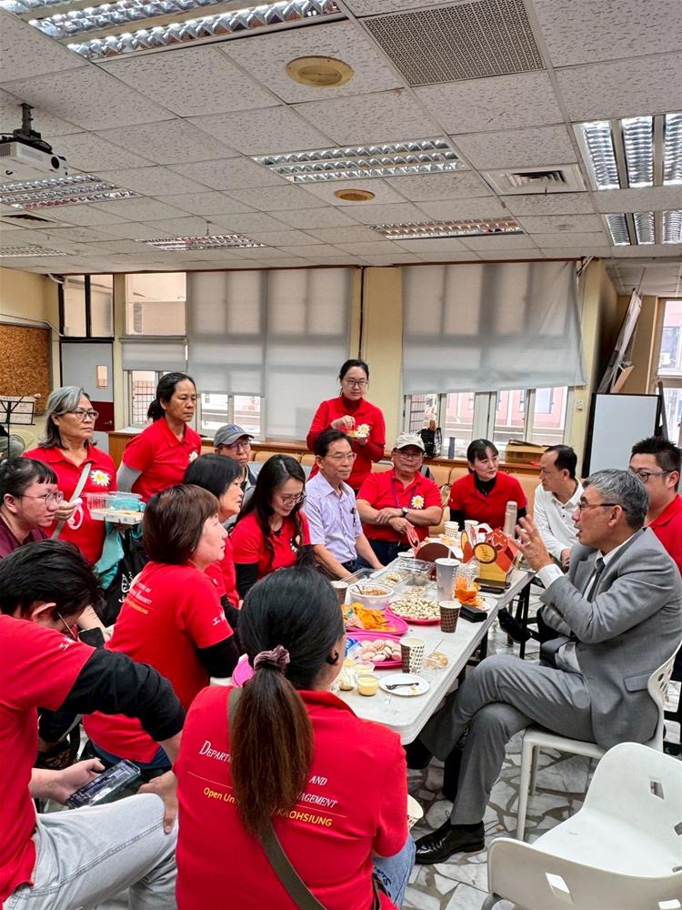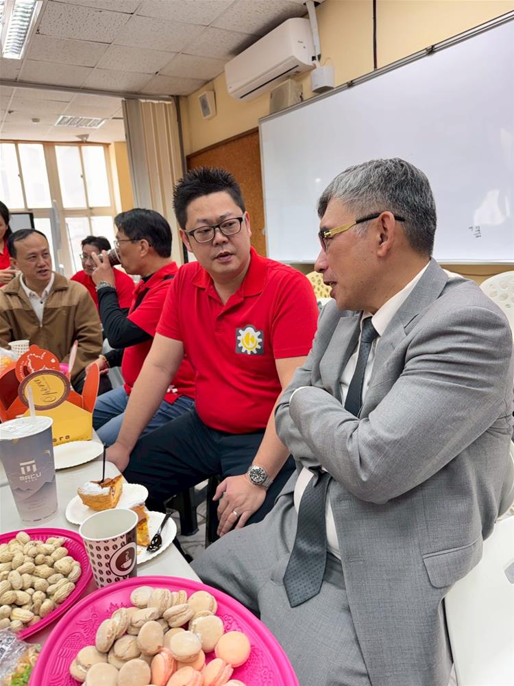 演講結束後,工商系學會特別準備茶點舉辦溫馨茶會,邀請吳明穎副總裁與學弟妹近距離交流,同學把握機會向學長請益海外就業、創業準備、語言學習與職涯規劃等議題,吳副總裁也耐心分享自身經驗與觀察,現場互動熱絡。他並親切邀請同學未來可前往越南參訪,實地了解產業環境與國際發展趨勢,為活動畫下充實且具啟發性的句點。