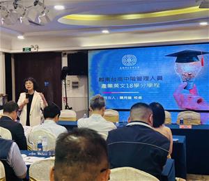 圖4 高雄空大陳月端校長與當地商會分享學校特色課程
