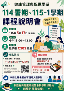 ⏰ 領餐時間|12:10-12:30 🎉 歡迎有興趣選修健管系新學期課程的同學踴躍參加!