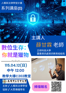 【大傳系-活動資訊】4/12(日)人權與法律學堂計畫系列講座(I)──「數位生存:你就是獵物」