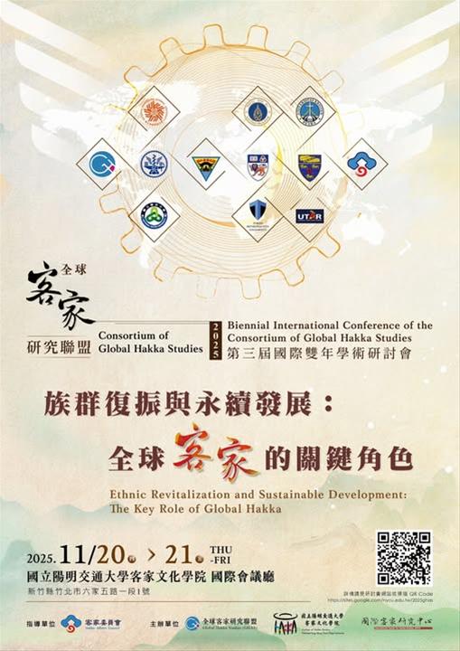 主旨:國立陽明交通大學與全球客家研究聯盟於2025年11月20日至11月21日於客家文化學院舉辦「2025第三屆全球客家研究聯盟國際雙年學術研討會」,敬請惠予公告並鼓勵踴躍參與,請查照。