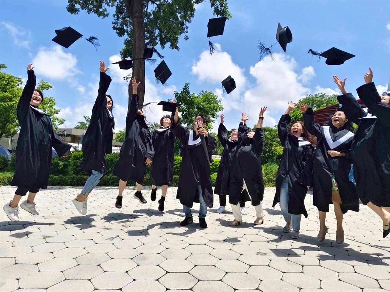 本屆本系共有158位畢業生光榮畢業,典禮當日彷彿一場跨國、跨海、跨文化的大團圓盛會。其中,來自泰國班的王明宗、詹錫霞、趙麗玲、李秀梅等四位台商同學更是攜家帶眷,遠渡重洋、千里迢迢返台參與盛典,讓現場洋溢著深厚的同窗情誼與溫暖的團聚氛圍。此外,軍職班與校外專班的同學也從全台各地專程返校,齊聚一堂,共同見證這一重要里程碑。