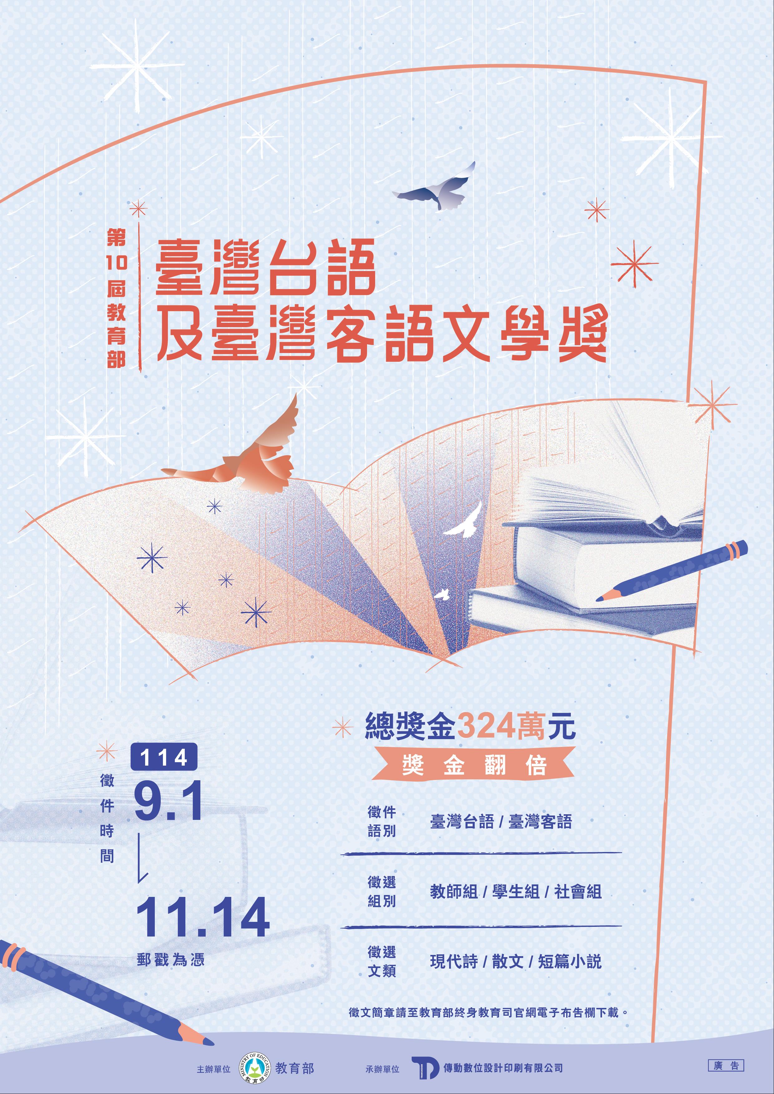 特舉辦臺灣台語及臺灣客語文學獎活動,鼓勵社會大眾、各級學校教師及國