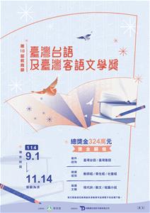 一、活動目的:為使社會大眾了解多語並存之價值,保存臺灣本土語言文化的多樣性,特舉辦臺灣台語及臺灣客語文學獎活動,鼓勵社會大眾、各級學校教師及國內高級中等以上學校學生,共同參與本土語言文學創作活動。