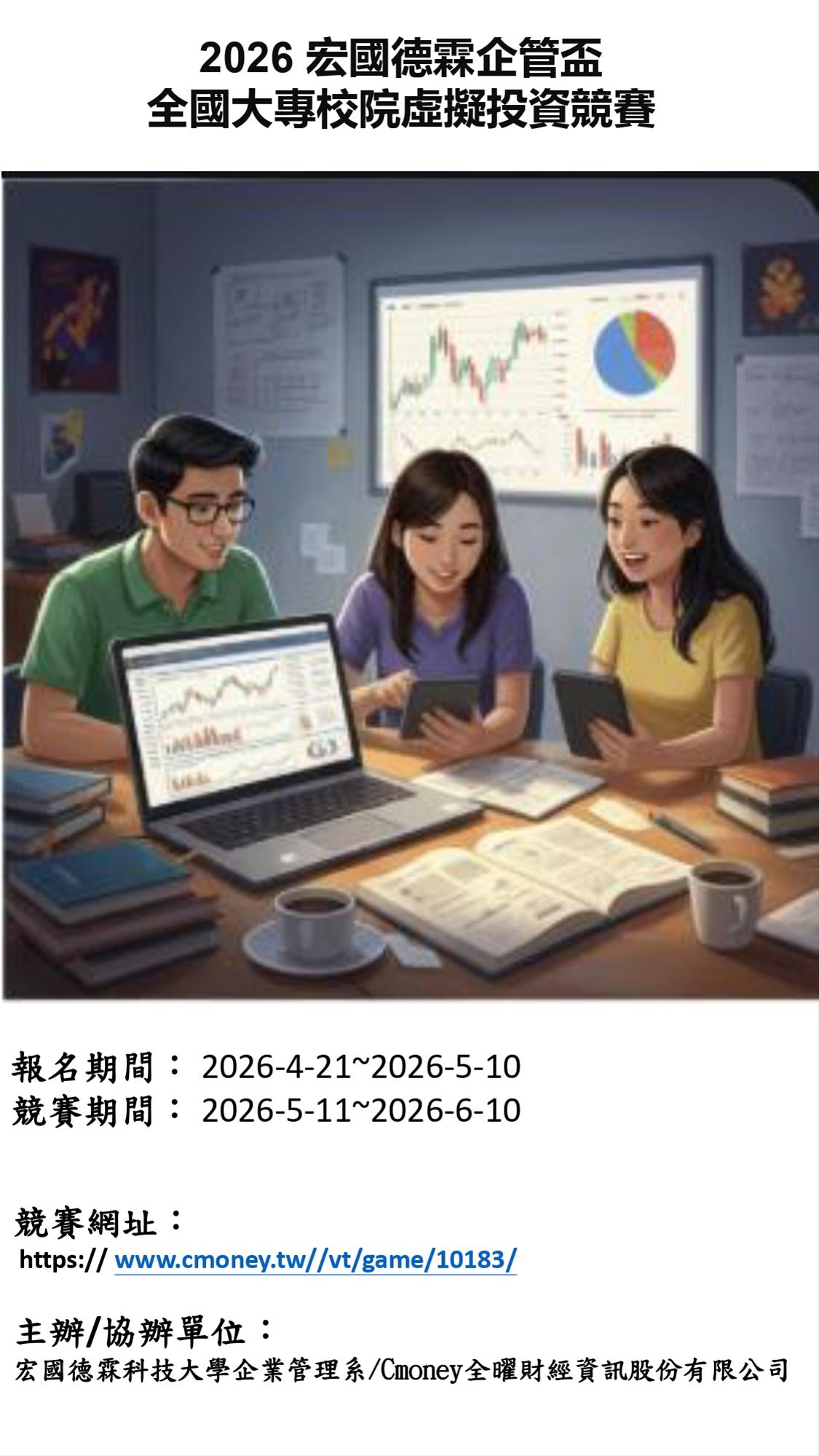 【轉知】2026宏國德霖企管盃全國大專校院虛擬投資競賽
