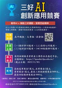 (一)為推廣「三好」(做好事、說好話、存好心)與「四給」(給人信心、給人歡喜、給人希望、給人方便)之精神,並結合人工智慧(AI)之教育應用,佛光大學辦理「三好AI創新應用競賽」,期以創新科技實踐人間佛教的核心價值,促進人文與科技的融合發展。
