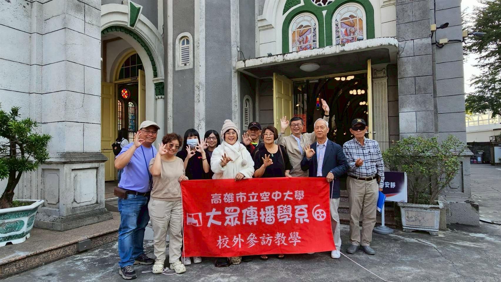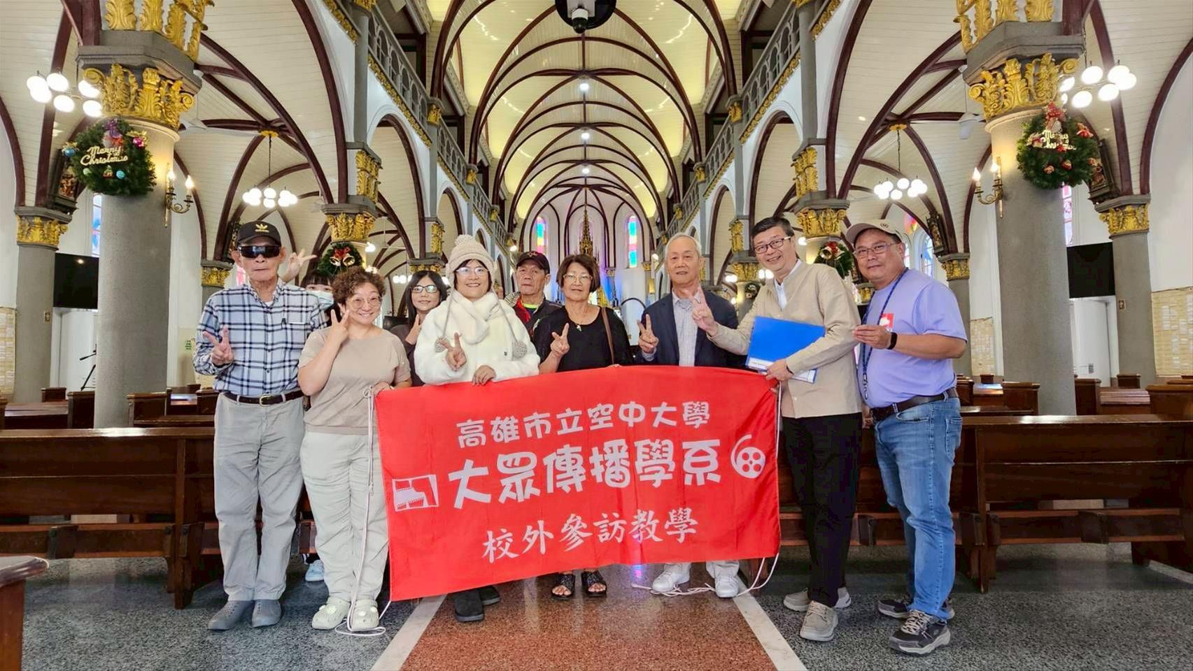 配合學生學習需要,王藝逢老師帶領學生於 12月5日 (星期五) 至鹽埕區的「天主教聖母顯靈聖牌堂」及苓雅區的「天主教高雄教區玫瑰聖母聖殿主教座堂」進行微電影創作教學及實地操作 (主題:雲的約定),藉此提升同學們的拍攝創作技能,師生共同創造美好的回憶,期待下次再續。