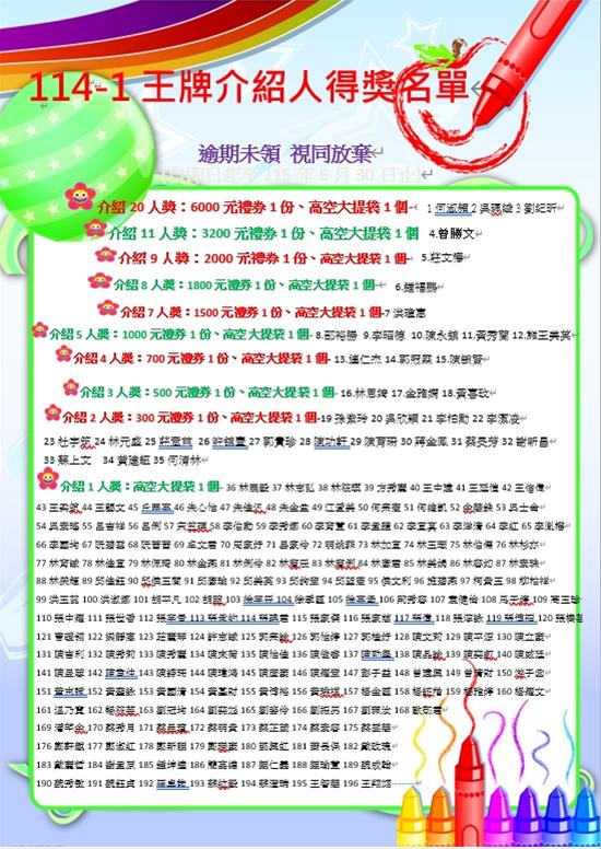 114-1學期 介紹新生得獎領取禮券和禮物 領取日期:自即日起~115年6月30日止(上班時間) 領取地點:註冊組 介紹20個人 領6000元禮券+提袋 介紹1人也有禮物喔~ (詳見名冊)