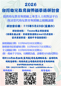 主旨:檢送南華大學舉辦「2026台灣幼兒教育與照顧學術研討會」徵稿辦法,請惠予公告並鼓勵師生踴躍與會,請查照。